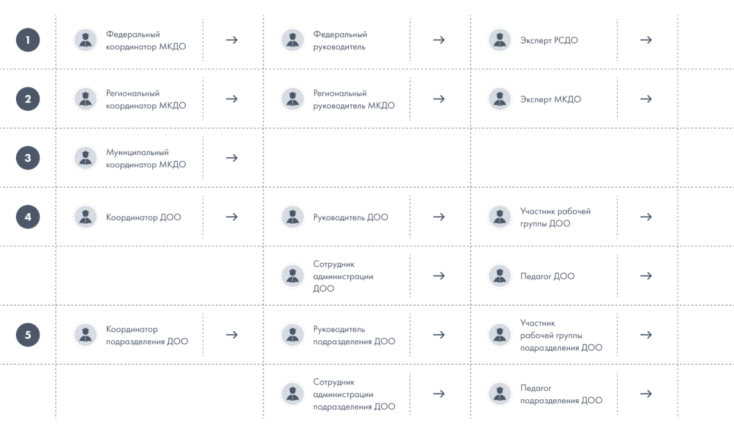 3. Региональный координатор МКДО производит регистрацию и авторизацию регионального руководителя МКДО, Администратора организации — оператора регионального МКДО, Экспертов МКДО в ДОО, Муниципальных координаторов МКДО, а также Координаторов ДОО, которые находятся в прямом подчинении региональному органу управления образованием.